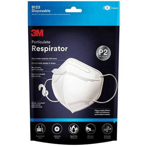 3M 9123En3 Respirator Mask White 3 Pack P2 Disposable