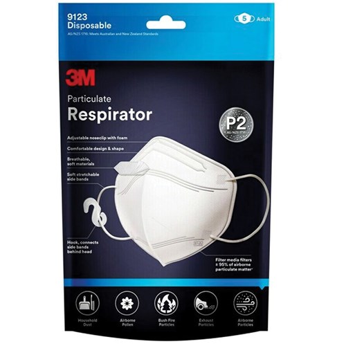 Intended for use by consumers in consumer applications to help reduce exposure to certain airborne particulate matter. The respirator is worn over the mouth and nose and attaches via elastic side bands with hook attachment behind the base of the head/top of the neck. Maintenance-free. Flat fold.