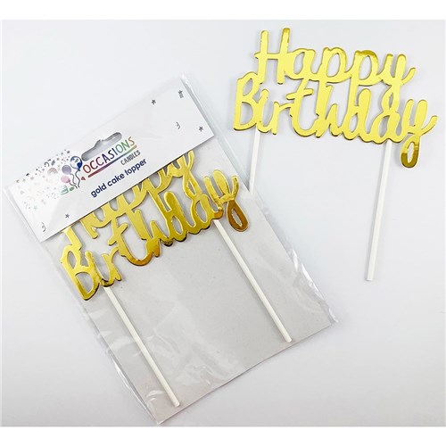 Alpen Happy Birthday Cake Topper 135Mm H X 100Mm W Metallic Gold