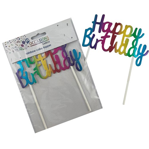 Alpen Happy Birthday Cake Topper 135Mm H X 100Mm W Metallic Rainbow