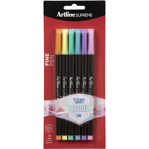 Artline Supreme Fineliner Pens 0.4Mm Pastel Assorted Colours Pack Of 6