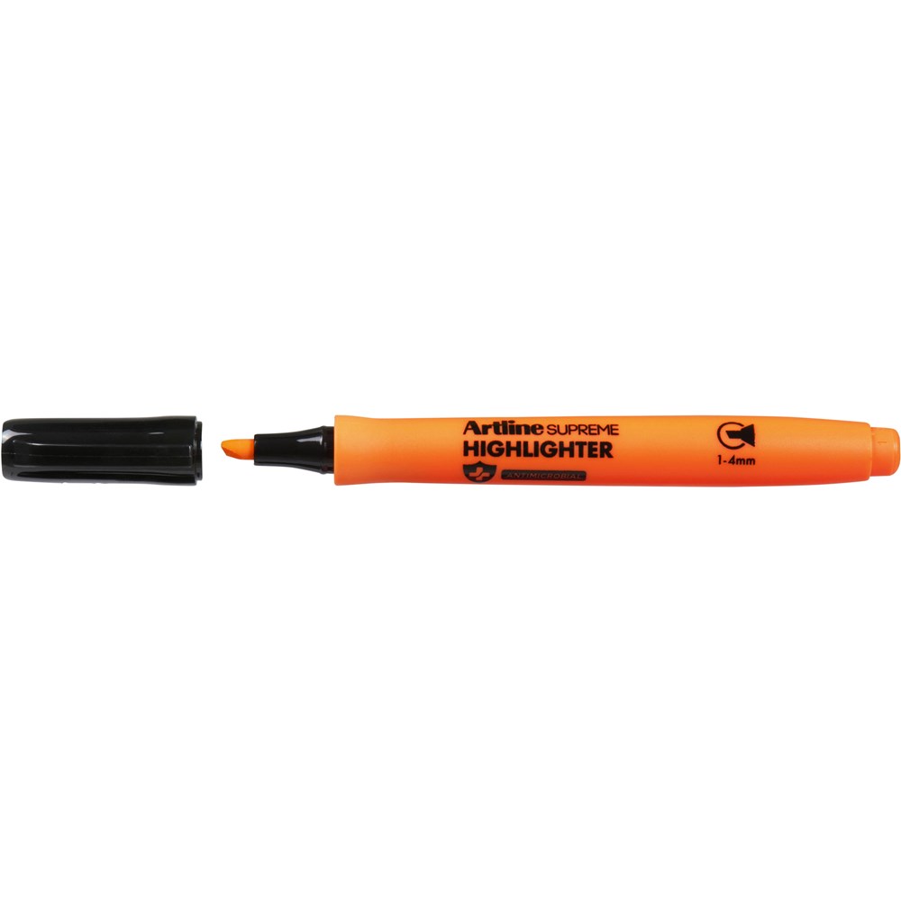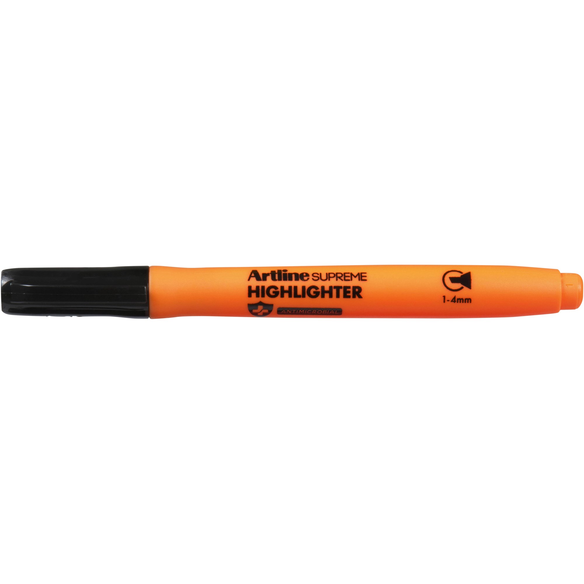 artline supreme highlighters offer a fun and contemporary design with leading functionality. ideal for all students and teens needs. 2mm to 5mm chisel nib ergonomic shape designed to fit neatly into your hand gloss, smooth grip for easy comfort writing bright dye-stuff ink for long-lasting neon colour available in yellow, pink, orange & green