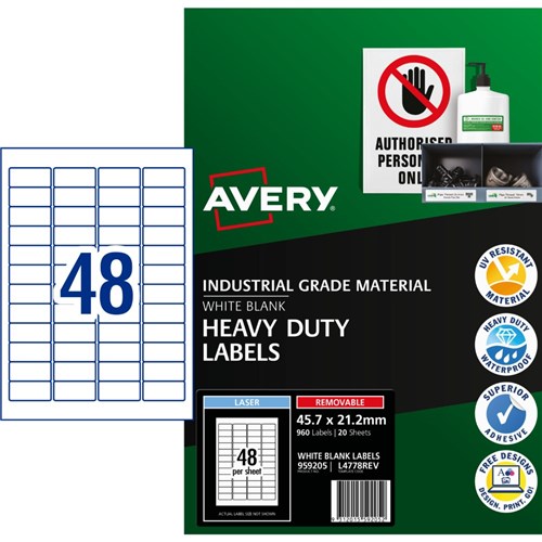 Avery 959205 Heavy Duty Industrial Labels White L4778