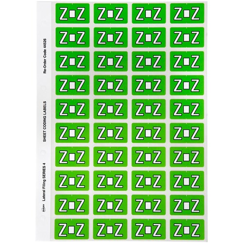 Avery Alphabet Coding Label Z Side Tab 25X42Mm L Green Pack Of 240