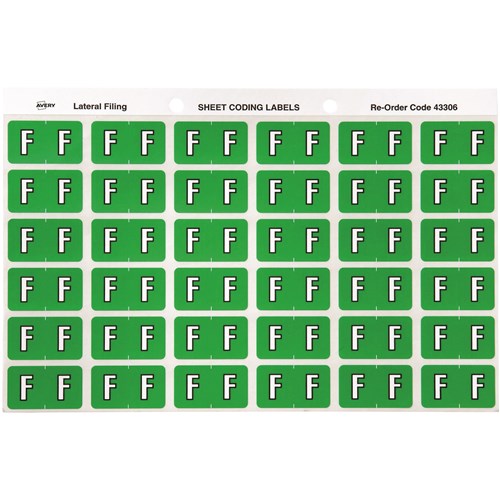 Avery Colour Coding Sheet Alphabetical 'F'