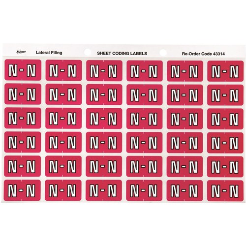 Avery Colour Coding Sheet Alphabetical 'N'
