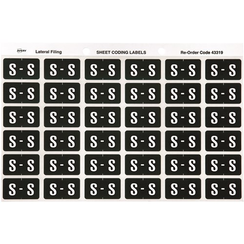 Avery Colour Coding Sheet Alphabetical 'S'