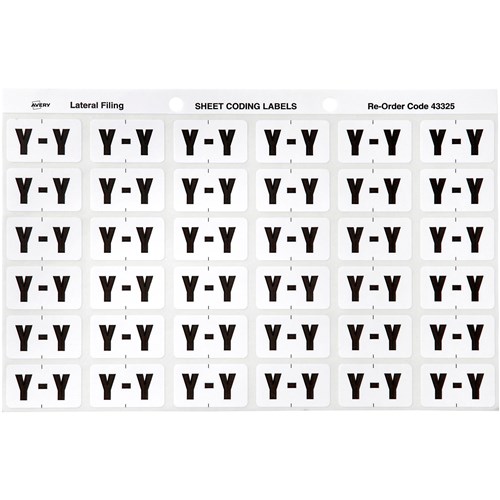 Avery Colour Coding Sheet Alphabetical 'Y'