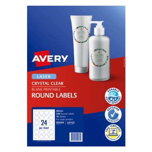 Avery Crystal Clear Laser Labels 6112C Round 40Mm Clear 24Up 240 Labels 10 Sheets