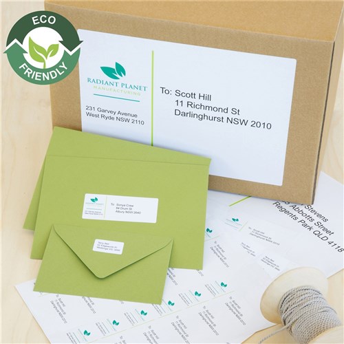 Environmentally friendly recycled material. Labels utilise water soluble eco-friendly adhesive. The packaging and label can be recycled. FSC certified labels made with paper from well-managed forests. This pack has 40 labels in total, 2 UP, 20 Sheets. Size: 199.6 x 4mm.