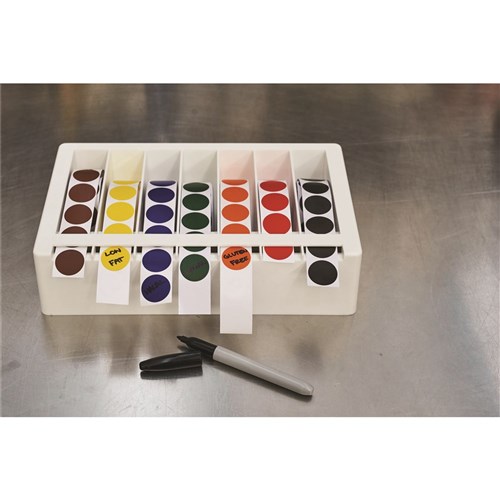 Provides an ideal solution to store day labels 24mm round Labels are readily accessible for use when required Day labels not included Fixing tools included for benchtop mounting