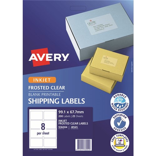 Use clear mailing labels to give a professional finish The transparent labels virtually disappear This gives a look as if the text has actually been printed directly on the labelled item These labels have a matt frosted finish providing an elegant touch to letters and envelopes with dark or patterned backgrounds Inkjet Labels guaranteed Jam Freeâ„¢ printing on inkjet printers Supported by free Avery templates available at averyproducts com au