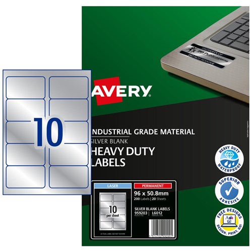 Avery L6012 Durable H/D Label Laser 10/Sht 96X50.8 Slvr Met Pack Of 200