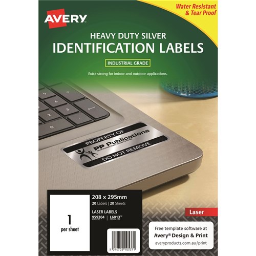 Avery L6013 Durable H/D Label Laser 1/Sht 210X298 Slvr Met Pack Of 20