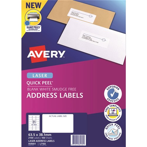 Avery L7160 Mailing Labels Laser 21 Up 63.5X38.1Mm Box Of 100