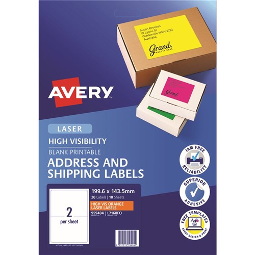 Ideal for labelling products, packaging & marking documents and files for urgent attention. Fluoro coloured labels make your items highly visible and enable instant recognition. Guaranteed Jam Free™ print. Supported by free Averyâ„¢ templates available at averyproducts.com.au/print