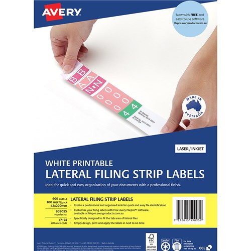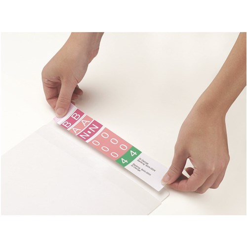 Avery™ FilePro® and Avery™ Lateral filing labels can create lateral files with brilliant colour coded labels in just a few easy steps. Easy-to-use with pre-designed templates. Match label systems already in use. Alphabetic and numeric colour coding file titles and barcodes.
