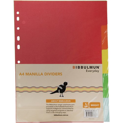 Bibbulmun Manilla Divider A4 5 Tab Brights