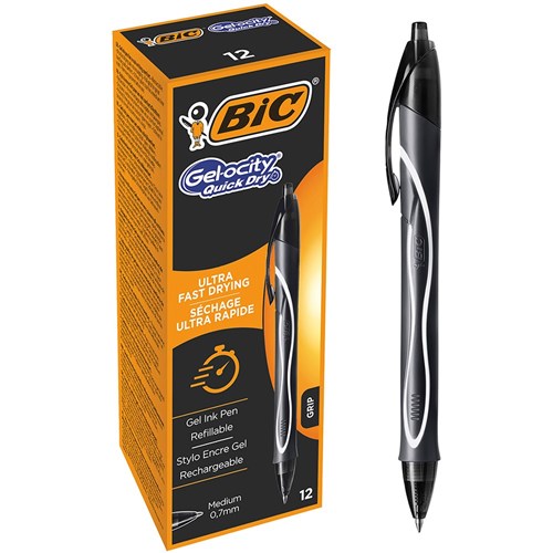 Bic Gelocity Gel Pen Retractable 0.7Mm Medium Black Pack Of 12