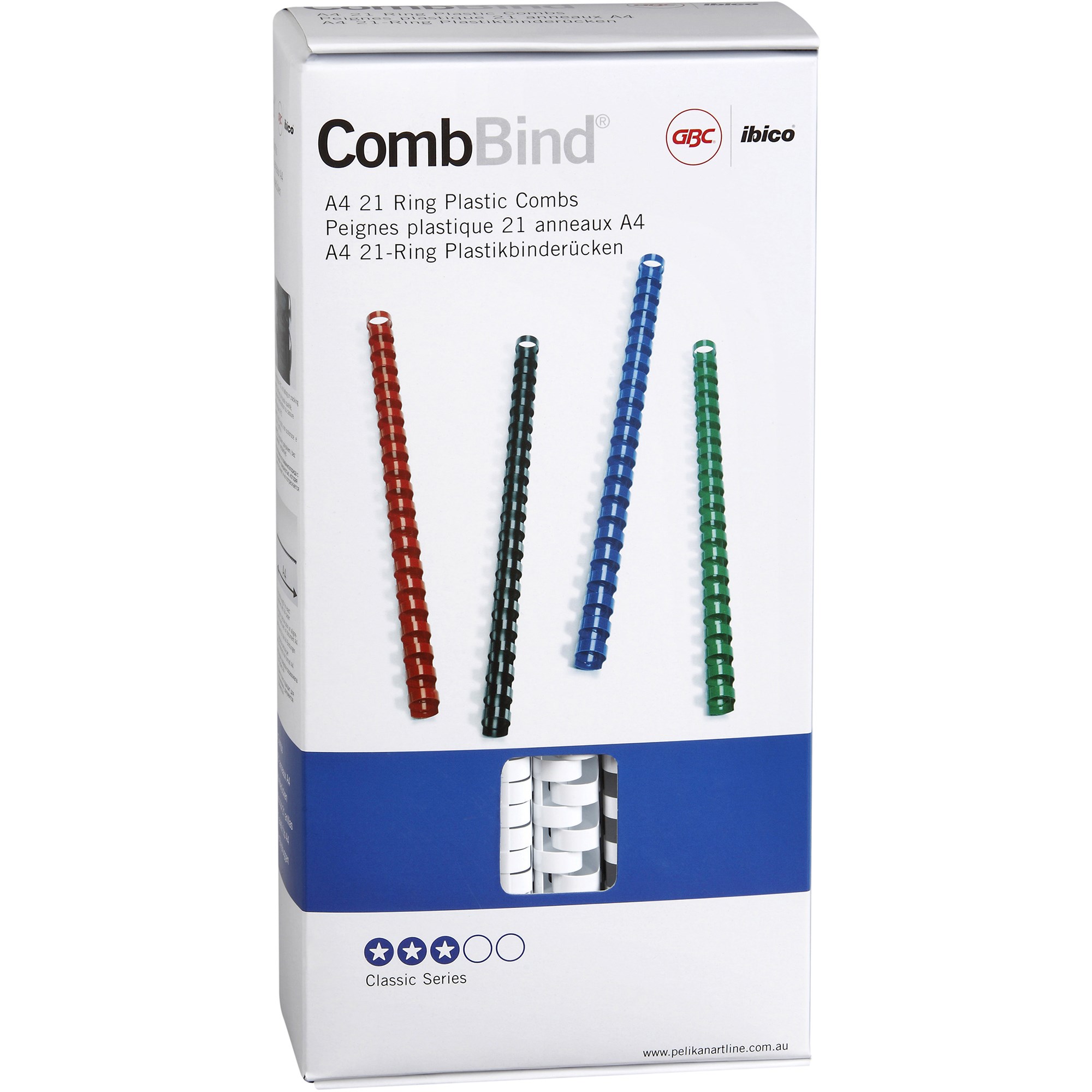 High quality plastic combs for use with all standard binding machines. Available in an array of colours and sizes from 6mm to 51mm. Combs can be reopened to insert or remove pages at any time. Allows for finished documents to lie flat when turning pages. Plastic combs are cost effective and durable.