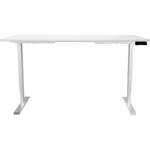 Boost Height Adjustable Workstation - Natural White / White Satin 1200mm W x 750mm D x 645mm-1250mm H E1 Rated 25mm T Natural White Table Top W/ Scallop Cable Access Black P/C Underframe3 Stage Legs Dual Motors Built In Anti-Collision Mechanism Height Range: 620mm - 1250mm 100kg Weight Capacity Max Speed: 38mm/S Noise Emission:
