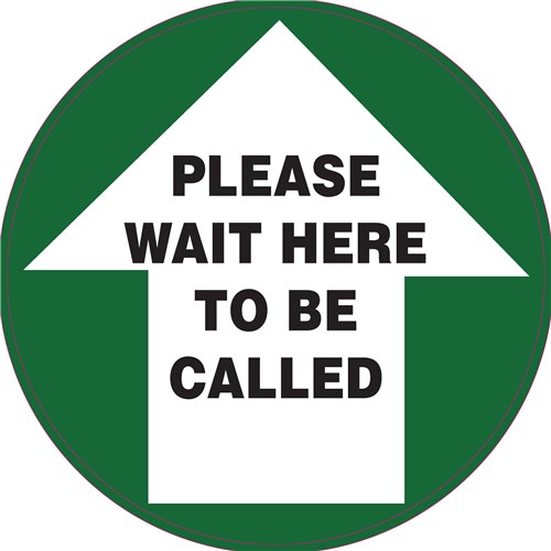 Help minimise the spread of COVID-19 in your facility with Brady's range of hygiene signs and social distancing floor markers Wording: Please Wait Here To Be Called (W/Arrow Picto) Material: Self Adhesive Vinyl With Protective Over Laminate Size:440mm Dia.