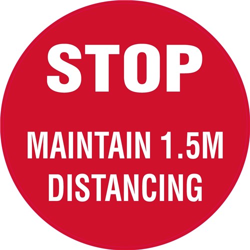 Help minimise the spread of COVID-19 in your facility with Brady's range of hygiene signs and social distancing floor markers Wording: Stop Maintain 1.5M Distancing Material: Self Adhesive Vinyl With Protective Over Laminate Size:440mm Dia.