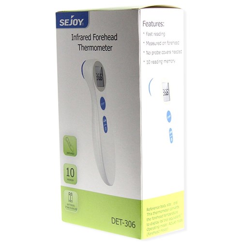 Fast reading - Infrared Non-Contact 2 x AAA Battery Included Temperature Is Taken From The Forehead No Probe Covers Needed Up to 10 reading memory The thermometer must be held 2-3 cm from the forehead for most accurate results