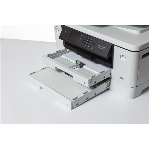 A3 Print / Scan / Copy / Fax. 1-sided: 28 ppm Mono and Colour 2-sided (duplex): 22 ppm Mono and Colour. Automatic 2-sided (duplex) A3 print, scan, copy and fax. First page out time of 4.4secs. Wired and wireless connectivity. NFC (Near-Field Communication) mobile print. 2 x 250 sheet paper trays and 100 sheets multi-purpose tray. Dual paper trays which handle paper sizes from A5 through to A3. 50 sheet 2-sided (duplex) A3 Automatic Document Feeder (ADF). High-yield replacement ink cartridges that provide up to 3,000 pages black and up to 1,500 pages colour. Unit Dimensions: 576mm x 477mm x 375mm. 1 year Manufacturer's Warranty.