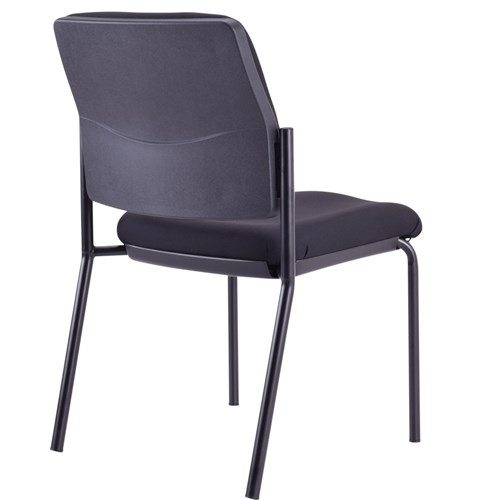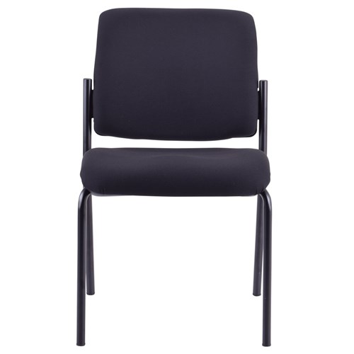 Chair Capacity: 130kg. Composition: Black fabric seat and back, black powder coated frame. Seat Width: 470mm. Seat Depth: 470mm. Back Height: 390mm. Indicative Seating Time: 6-8 hours. Stackable. 10 Year Manufacturer's Warranty. Delivery, installation and assembly charges may apply to furniture. Please enquire to confirm.