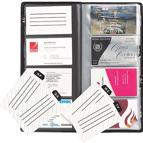 • Long lasting plastic pages protect and store your business cards.