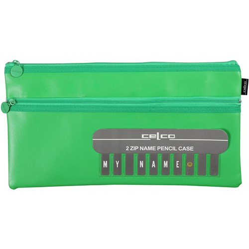Celco Pencil Case Name 2 Zips Large 350X180Mm Green