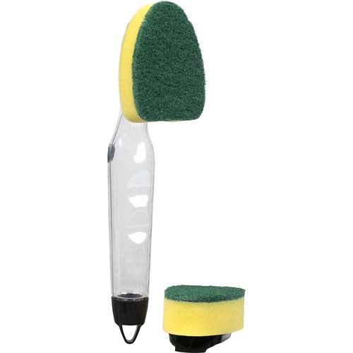 Sponge head that soaks up dishwashing detergent. Refillable with any dishwashing detergent. Includes sponge head replacement. Heavy duty scourer head.