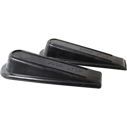 Pack of 2 door wedges. Black Rubber. 23mm High. Hard-wearing rubber door stopper. Suitable of all floor surfaces. Indoor and outdoor use.