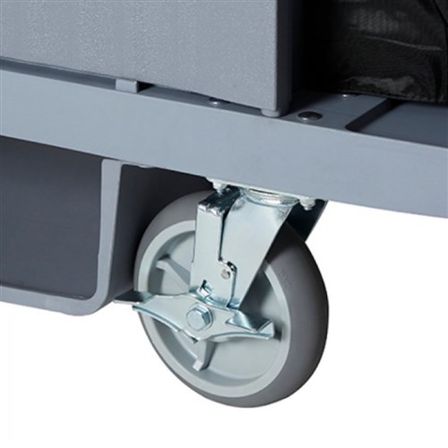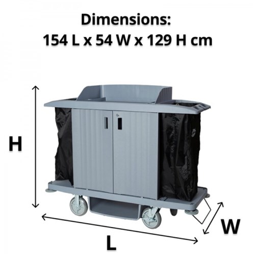 Assembly required Hard cover lockable doors and 2 x 100L bags with metal eyelets and side zip access All round bump protection 2 fixed & 2 swivel 200mm castor wheels Under carriage tray holder Load limit 110kg Weight: 43Kg. Dimensions: 154L x 54W x 129cmH.
