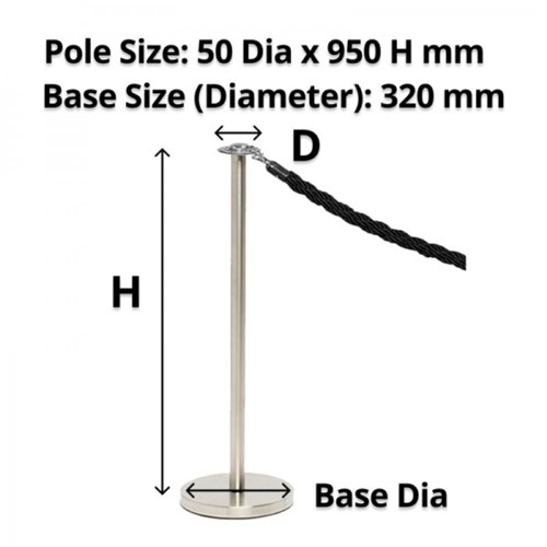201 grade stainless steel barrier, indoor use only. Four rings for easy attachment. Base weight: 5.8kg. Rope Length: 1.5m.