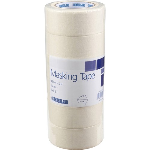 Cumberland masking tape great for general purpose use, easily removable. Quality masking tapes for everyday purposes. White tape. 145 Micron. Pack of 6, shrink wrapped