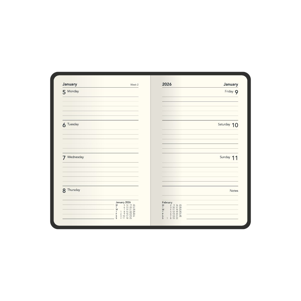 The Designer series features trendy colours and textured covers Available in A5 Day to Page and Week to View formats Features include: 3-year calendars, current and forward year planners, financial summary page, international holiday list, international dialling guide