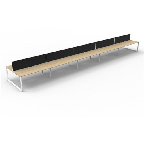 Deluxe Loop Workstation 10 Person With Screen 1500Wx750D Oak Top White Double Frame