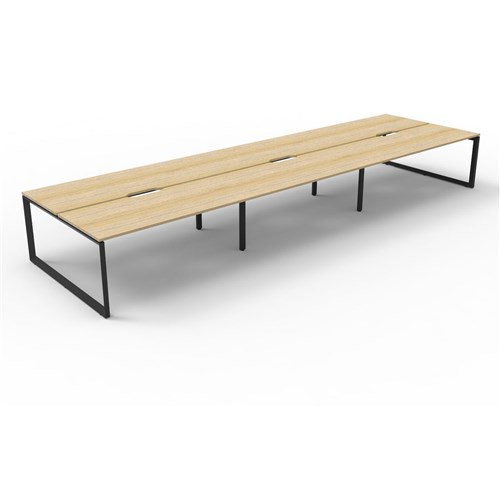 Deluxe Loop Workstation 6 Person No Screen 1500Wx750D Oak Top Black Double Frame