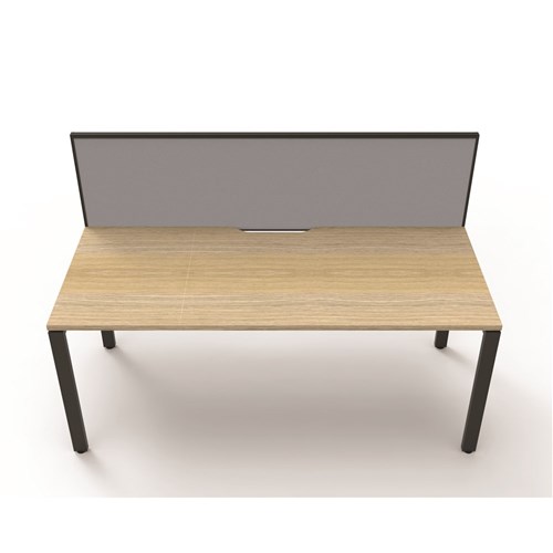With Screen Natural White Worksurface With 410mm W x 50mm D Scallop Cable Access 1800mm W x 780mm D x 730mm H (Overall), 1800mm W x 750mm D x 730mm H Per User 60mm x 30mm Profile Leg Underframe In Black P/C 495mm H x 30mm T Pinnable Privacy Screen Upholstered In Grey Fabric With Matching Black Powdercoat Extrusion Adjustable Levelling Feet 5 Year Manufacturer's Warranty