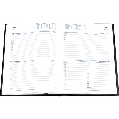 • Stylish hardcover casebound diary with blue leather grain cover.