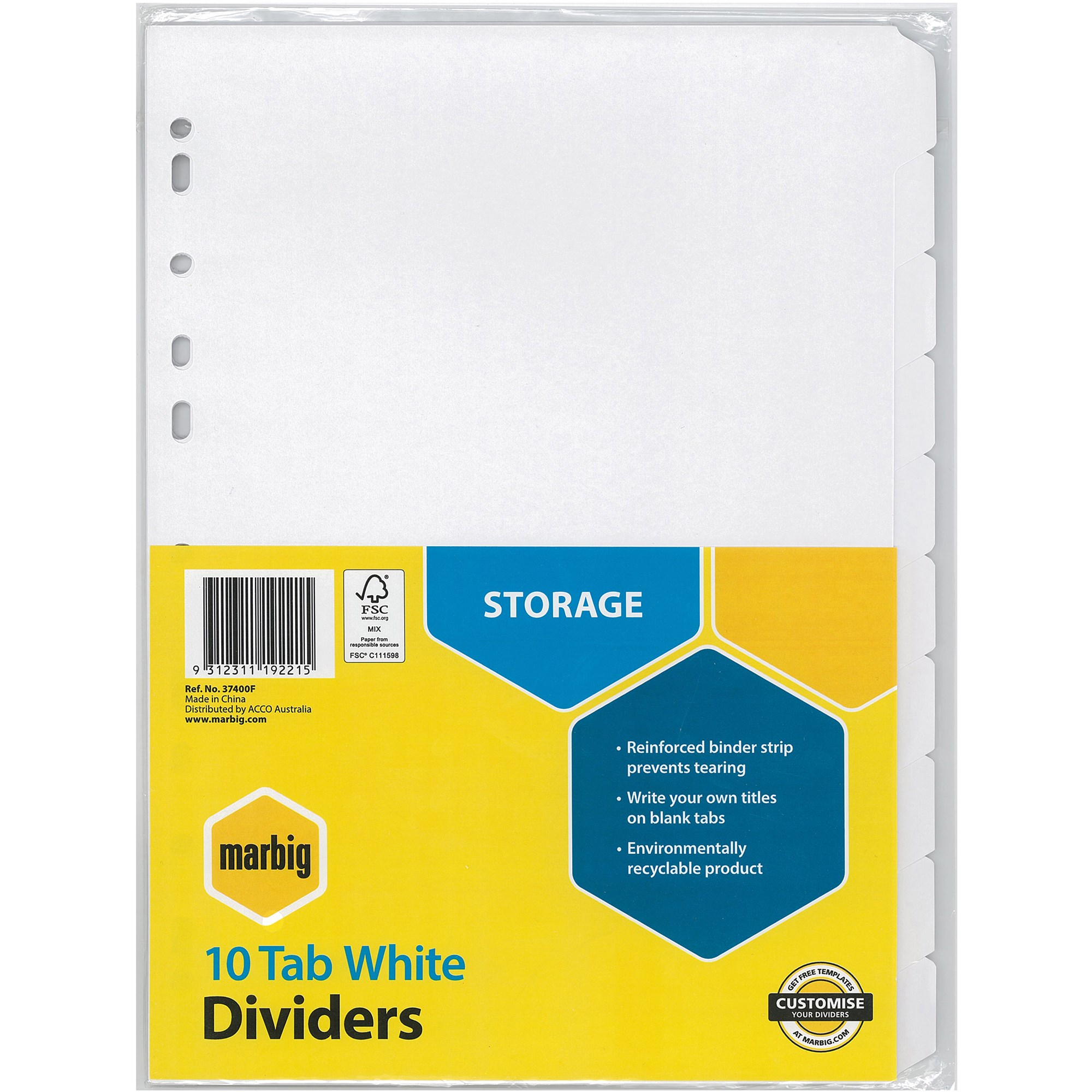 Divider 10 Tab A4 White Marbig