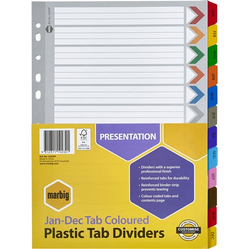 Divider Jan-Dec Tab A4 Plastic Tabbed