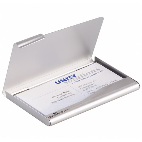 Portable & presentable storage option for business cards. Single aluminium holds up to 20 business cards. Duo aluminium features 2 compartments for both giving and receiving business cards.