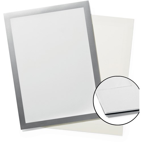 • Quick insertion and exchange of documents via a fold-back magnetic frame.