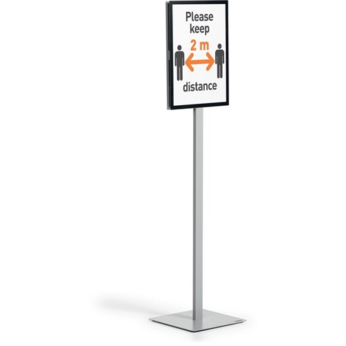 Suitable for presenting information or as a guidance system. Double sided readability. Easily change notices or signs by lifting the DURAFRAME® Magnetic frame. Very stable due to the weighted base and rubber buffers. Can be used in portrait or landscape format. Easily adjaustable without using tools. Ideal for reception areas, lobbies, trade fairs and waiting rooms.