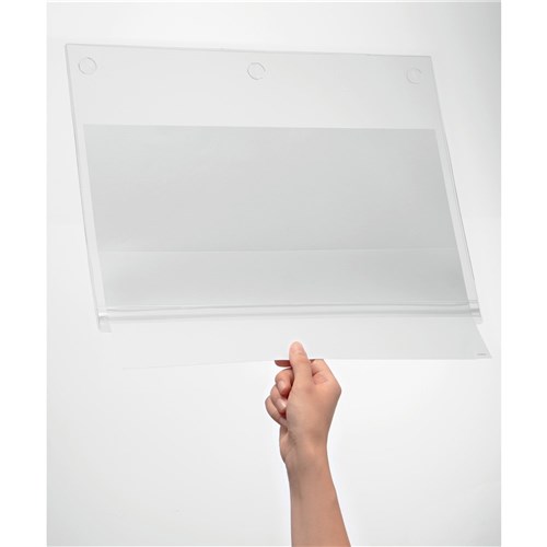 Water resistant, self adhesive pockets for displaying notices or signs. The water proof pressure closure protects the contents against rain, humidity & dirt. Tested to IPX5 standards (can resist a sustained low pressure water jet spray). Can be used in portrait or landscape format. Anti-reflective.