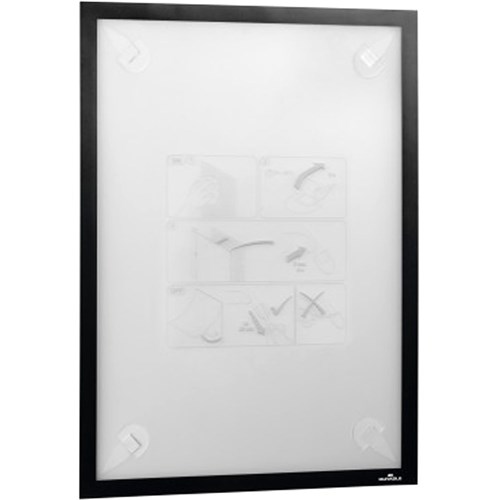 Presenting information in a high quality and professional way Quick insertion and exchange of documents via a fold-back magnetic frame Can be attached to wallpaper, wood and most plastics thanks to the use of adhesive strips