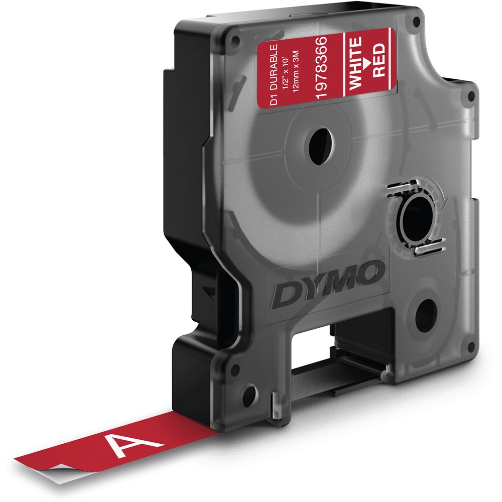 Dymo D1 Label Cassette Tape Durable 12Mm X 3M White On Red
